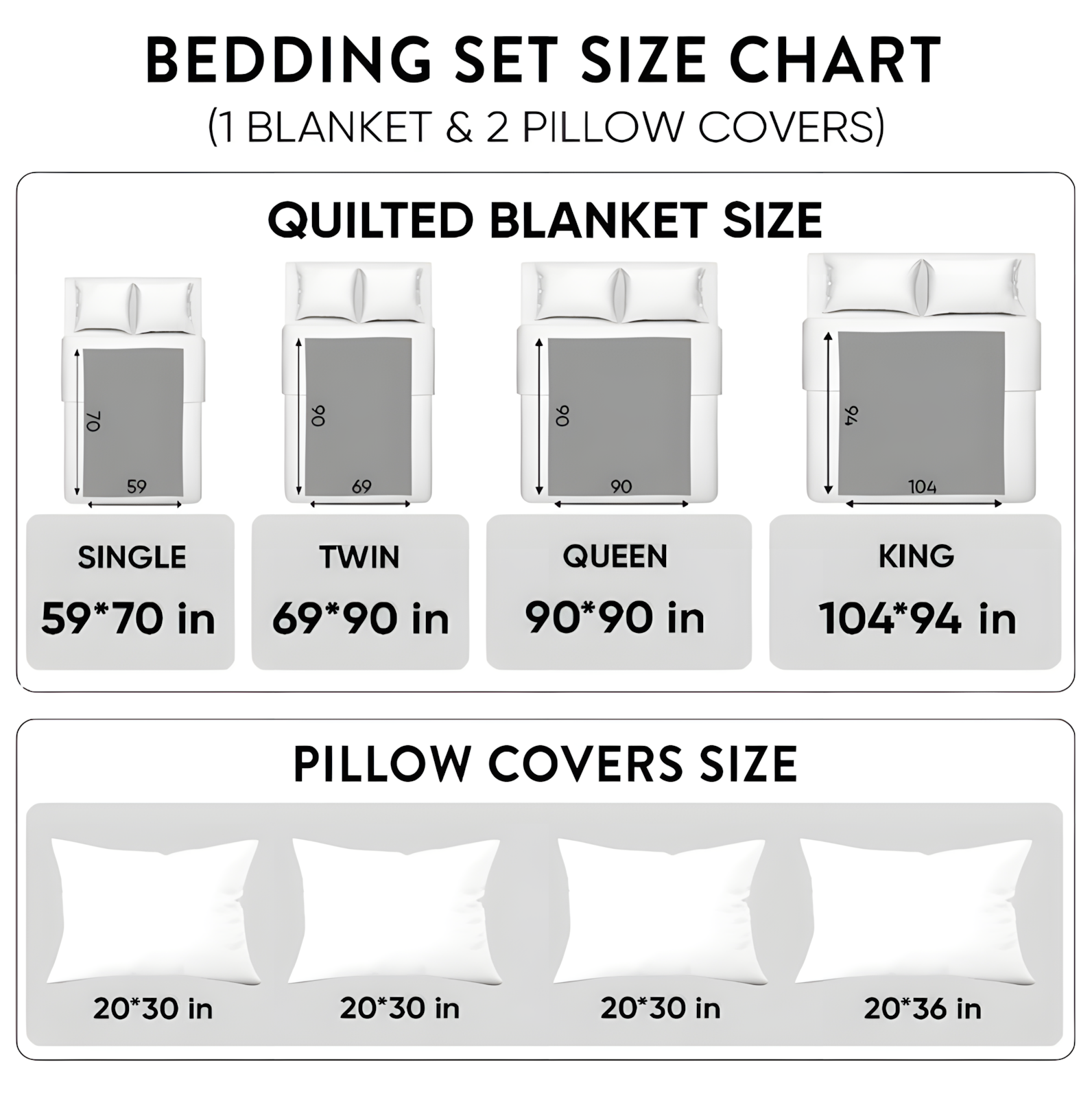 Elevate your bedroom with the luxurious comfort and elegant design of our 3-Piece Quilted Bedding Set. Thoughtfully crafted to create a serene sleeping experience, this set is a blend of quality, style, and convenience.